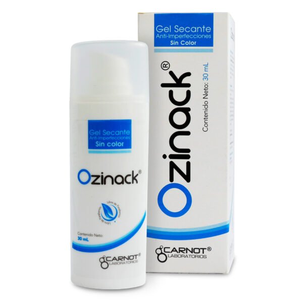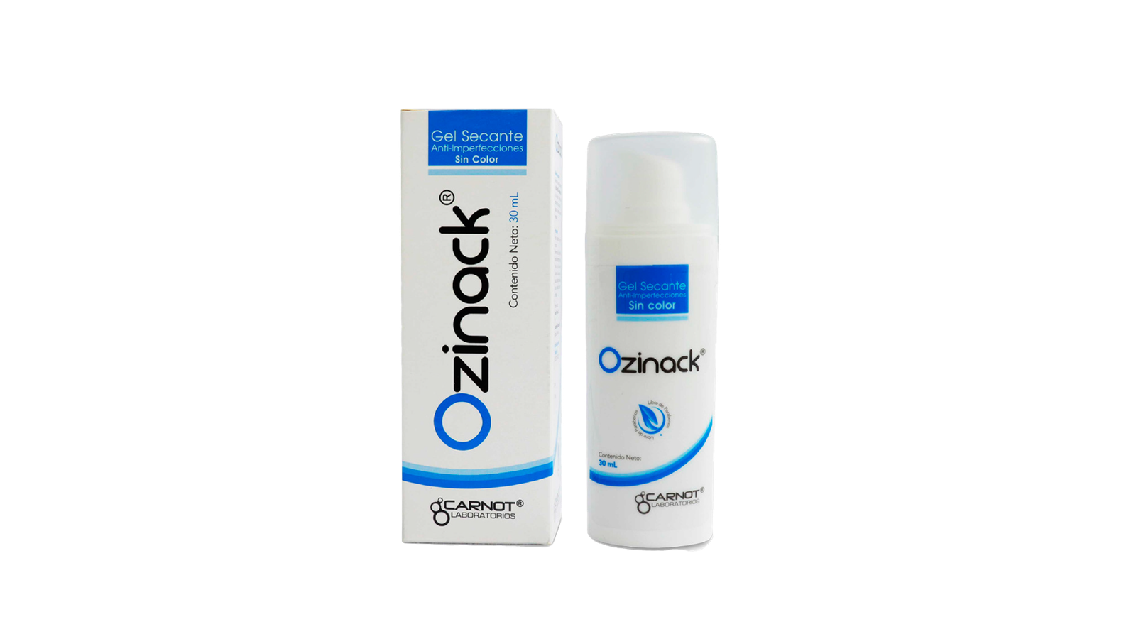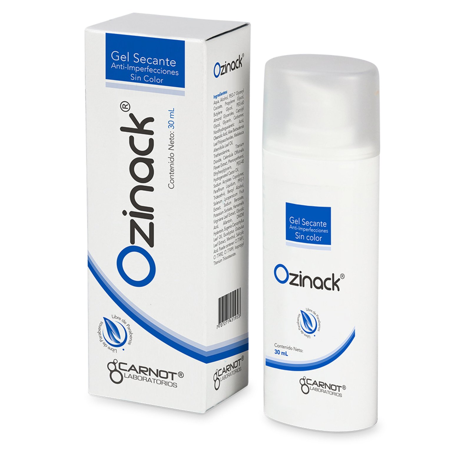 Ozinack® Gel Secante sin Color, posee una fórmula única para cuidar la piel con imperfecciones, gracias a sus componentes es ideal para el manejo de la piel grasa y con espinillas. Sus ingrediente son:
